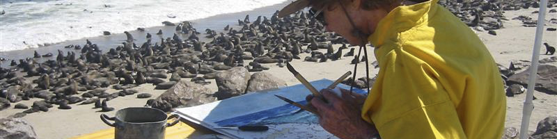 | About Alice ElahiSouth African landscape artistAlice Elahi established herself as one of South Africa’s leading landscape artists. Her most enduring subject, for over 20 years, was the Namibian landscape – its desert interior and its wild and inaccessible shoreline. Alice Elahi has said: “The Namib to me is Africa… There is so much in this wonder world of the Namib. My work is really memories of this other Africa, the space, the beauty.“ Alice has painted the plains of the diamond areas of the Sperrgebiet, the pink flats, areas of feldspar rock, plains of quartz crystals the zebra dunes of the Skeleton Coast. With the help of the Nature Conservation she was able to paint in ecologically vulnerable areas to which public access is totally denied. Other major themes have been seascapes of the Cape coast, the African Bushveld, flower studies and early subjects such as beach studies with figures. She worked in watercolour, mixed media and oils. The late art critic Johan van Rooyen said (2002): “Elahi may today be considered one of the most accomplished and subtle landscapists in the book of South African art. She expresses most poignantly the temper and temperament of our wilds.” Her lifeAlice Elahi was born in Cape Town in 1926 and studied in London under the Polish expressionist Zdzis Ruszkowski after completing a BSC in Chemistry at UCT. She settled in Pretoria with her Iranian husband and four daughters and lived there for over 50 years until she passed away in 2020. Her professional career began when she won the New Signatures Award in 1968. That was soon followed by a solo show in Pretoria at the Village Gallery. Her work is now included in public and private collections in South Africa, Namibia and abroad, among them the Pretoria Art Museum, the National Art Gallery Windhoek and the Swakopmund Art Association and various embassies abroad. Johan van Rooyen also wrote about Alice in the Lantern in 1977, giving an insight into her career in an article entitled Alice Elahi in her Prime. An article by the late Dr Albert Werth, then director of the Pretoria Art Museum, on Alice Elahi's work appears in Our Art 4.  Alice held an annual exhibition at her studio gallery in Pretoria for over 24 years, and in 2015 she held a large retrospective at the Pretoria Art Museum, which was accompanied by the publication of a book about her and her art, Alice Elahi - Landscape Through an Artist's Eyes. This was followed in late 2015/early 2016 with a show focusing on her seascapes at the Irma Stern Gallery in Cape Town, the Rupert Museum in Stellenbosch, as well as the Wiliam Humphreys Art Gallery in Kimberley. Other important exhibitions include her 1988 retrospective at the University of Pretoria, as well as many solo shows in Pretoria, Johannesburg, Cape Town and Namibia.